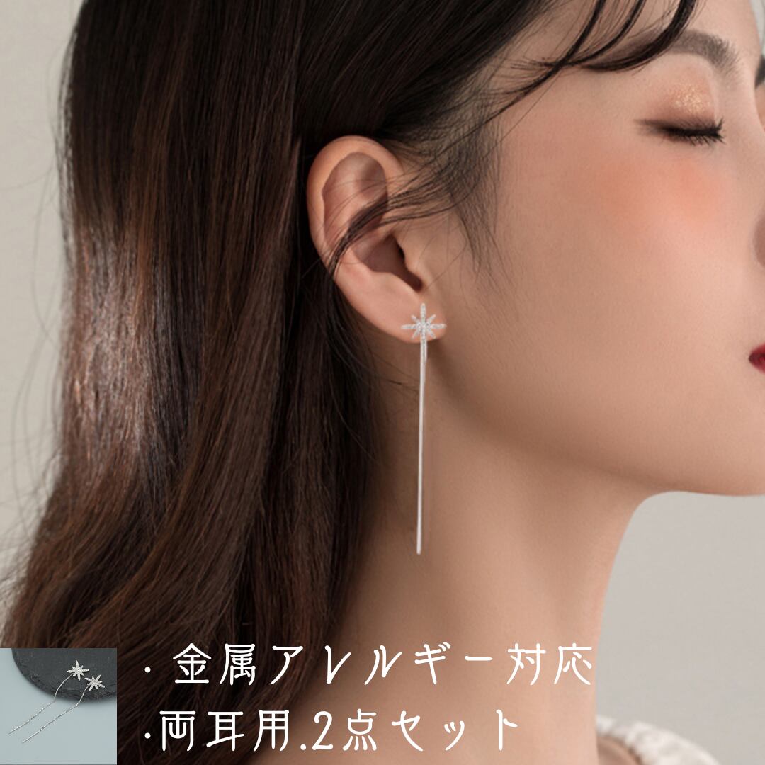 ロングピアス 金属アレルギー対応 小さめ 揺れる ストーン チェーン(2240)
